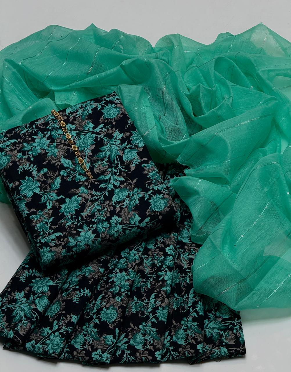 This beautiful outfit comes with a pure cotton silk Dupatta featuring intricate Zari work, giving a luxurious festive and traditional touch. The printed shirt and trouser are crafted with finest detailing and high-quality prints that stay vibrant wash after wash.